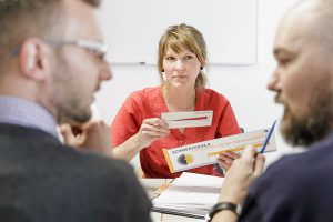 Marei Haarmann ist solch eine Schmerzmanagerin. Eigentlich wollte sie Krankenschwester werden, doch dafür hätte sie bis zum Ausbildungsbeginn ein Jahr überbrücken müssen. So begann sie ein FSJ in der Friedrichsburg und machte schließlich die Ausbildung zur Pflegefachkraft. Seit 16 Jahren ist die examinierte Altenpflegerin eine feste Größe im Team und spezialisierte sich vor einiger Zeit auf dem Gebiet des Schmerzmanagements. Ihr Arbeitgeber bot ihr eine Weiterbildung zur Pain Nurse und die Mitarbeit im Aktionsbündnis “Schmerzfreie Stadt Münster“ an. Marei entwickelte in der Friedrichsburg zusammen mit anderen Pflegefachkräften Standards zu Schmerzmanagement in der Altenpflege, hier speziell für ihre Einrichtung anhand des Expertenstandards. „Ich habe mich richtig gefreut, dass mir das angeboten wurde. Einerseits war es toll, an einem Konzept mitzuwirken, um die Situation der Bewohner hier im Hause zu verbessern. Und dann der Austausch in der Gruppe: er hat mir neue Sichtweisen eröffnet“, sagt sie.