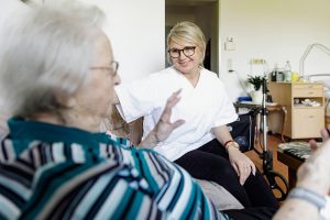 Er erzählte ihr von einem Altenheim in Mecklenbeck, dort suche man Mitarbeiter für die Altenpflege. Gesagt, getan. „Altenpflegeeinrichtungen kannte ich bis dahin gar nicht. In Polen pflegt man die älteren Menschen zuhause. Mich hat das irgendwie bedrückt: ich sah alte Menschen, die bedürftig waren und sich sehr über jeden Kontakt zu anderen Menschen freuten“, erzählt Frau Kryzkawska.