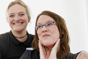 Erst einmal ging Carmen Feitsma jedoch einen Schritt zurück. Sie arbeitete zunächst auf einer halben Stelle, bis es ihr wieder besser ging und sie ihren Stundenanteil erhöhen konnte. „Etwas anderes als die Arbeit mit Menschen konnte ich mir nicht vorstellen“, berichtet sie. Ihre damalige Vorgesetzte förderte sie und schnell wurde Carmen Feitsma Wohnbereichsleiterin. Da lernte sie, was Führung heißt. „Das ist eine Sandwich-Position, in der man Druck von mehreren Seiten verspürt“, erzählt sie rückblickend. Auch da bewährten sich ihre Führungs- und Organisationsqualitäten, und so wurde Frau Feitsma erst stellvertretende Pflegedienstleitung, seit 2014 ist sie verantwortliche Pflegedienstleitung.  Und ständig qualifizierte sie sich weiter: Fortbildungen in ethischer Fallbesprechung, Zusatzqualifikation in der Verfahrenspflege und im Advance Care Planning.