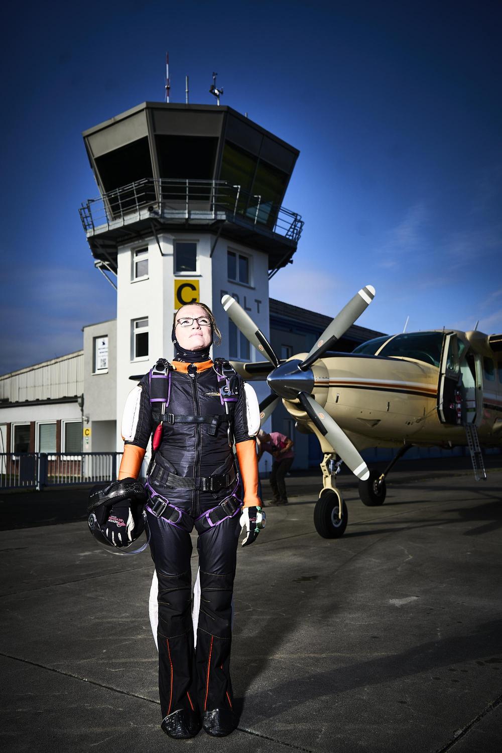 Von ihrer Willensstärke beeindruckt, erkundige ich mich: „Jede Kraft, jede Batterie muss doch mal wieder aufgeladen werden. Wie machen Sie das eigentlich?“ Ihre Augen beginnen zu strahlen: „Mein Kater ist total bereichernd für mich, er ist einfach da und gehört seit über zehn Jahren zu mir. Wenn es ihm gut geht, geht es mir ebenfalls gut.“ Ich habe eine Katzenallergie und kann das nur theoretisch nachvollziehen. Aber sofort ergänzt sie ihre Aussage: „Auch dass mein Partner an mich glaubt, gibt mir den Rückhalt, den ich brauche. Ach ja, und natürlich mein Hund Anton, der einfach nur ungestüm und lustig ist.“ Auf meine Frage nach einem Hobby, welches ihr zusätzliche Energie verleiht, antwortet sie mit überschwänglicher Begeisterung: „Nach einem Schnupperwochenende bin ich vor einiger Zeit zur Fallschirmspringerin geworden. Inzwischen bilde ich hier ebenfalls Menschen aus. Es ist ungeheuer spannend und erweitert nicht nur symbolisch meinen Horizont. Kennen Sie das Lied von Reinhard May, ,Über den Wolken‘? Dinge, die uns sonst so wichtig vorkommen, werden beim Fallschirmspringen mit einem Mal ganz neu bewertet.“ Als sie jetzt noch erzählt, dass man mit den Fallschirmsprungschüler*innen im freien Fall aus 4.000 Metern Unterricht abhalten kann, wird mir endgültig klar, dass es wirklich ihre Bestimmung ist, die sie mit solcher Leidenschaft ausübt: Menschen auszubilden, sie zu selbstbewussten und starken Typen zu machen – nicht nur in der Pflege.
