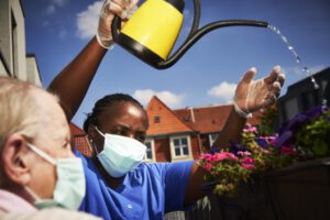 Doch die angehende Pflegefachkraft ist nicht nur von der Diakonie begeistert, es ist auch die Arbeit, die sie stark motiviert. Sie spürt, dass die Menschen sie mögen und sie freut sich über die Anerkennung, die von den Bewohnern oftmals nur noch durch ein Lächeln gezeigt werden kann. „Es geht hier bei der Arbeit nicht um den Kopf, es geht um das Herz“, drückt Blessing Obianyo mit ihren Worten aus, wie Kommunikation mit dementiell erkrankten Menschen funktioniert.