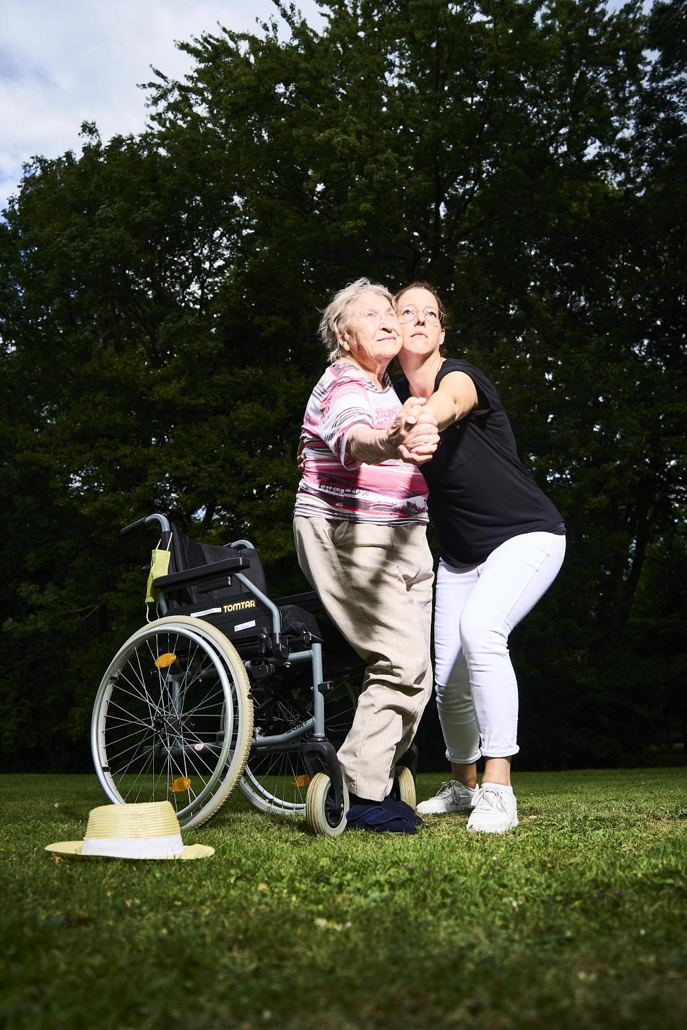 Ihr Vater, der zu Hause vom Palliativnetz betreut wurde, hatte vor seinem Tod noch einen letzten Wunsch. Er wollte unbedingt noch einmal nach Berlin, ins KADEWE und im Berliner Casino noch einmal pokern. Alle waren skeptisch, aber Annika Diederichs begleitete ihren Vater ohne zu zögern nach Berlin. Im Koffer waren genügend Morphinspritzen und der Vater lebte noch einmal kurz auf und genoss den Ausflug. All dies verstärkte den Entschluss, eine Ausbildung zur Pflegefachfrau an der Johanniter-Akademie beginnen. „Fühlen Sie sich jetzt, nach einem halben Jahr, in Ihrem Entschluss bestätigt?“, will ich wissen. „Meine erste Klausur wurde mit einer 1,6 benotet,“ erwidert sie stolz. Sie führt weiter aus: „Hier gibt es fast nur empathische Menschen, die Schule macht Spaß, was man ebenfalls bei der Leiterin spürt. In meinen vielen Berufen war das so nie. Wertschätzung und Anerkennung sind hier zum Glück die Regel und nicht wie vorher die Ausnahme.“ „Das hört sich zwar überzeugend an, aber können Sie es vielleicht an einer Alltagserfahrung veranschaulichen?“ „Unter den 30 Bewohner*innen einer Station unseres Heimes in Nottuln gibt es eine demente ältere Dame, die oft griesgrämig ist und sogar hin und wieder absichtlich Kolleginnen mit ihrem Rollstuhl anfährt. Mir dagegen kniff sie neulich leicht in die Wange und sagte in einem liebevollen Ton: ,Schön, dass du da bist, Schätzchen.‘ Offensichtlich erinnere ich sie an einen Menschen, den sie sehr gern hatte.“ Annika Diederichs überlegt und berichtet mir dann von Herrn S., einem unter Parkinson leidenden Bewohner, der aber früher ein großer Tänzer war und bis heute begeisterter Abba-Fan ist. Sein Lieblingslied ist „Dancing Queen“. „Als ich das realisierte, hatte ich eine Idee. Normalerweise bringen wir ihn nach dem Essen mit mehreren Personen zu seinem Fernsehsessel. Herr S. ist mittlerweile sehr korpulent und kaum noch beweglich. ,Heute singen wir ,Dancing Queen‘ und tanzen gemeinsam in den Fernsehsessel‘, rufe ich ihm begeistert zu. Seine Augen beginnen ein wenig zu strahlen und Herr S. ist motiviert, das merke ich sofort. Wir singen ,Dancing Queen‘ so gut wir es können und erreichen mit dem Rollstuhl tänzerisch den Fernsehsessel. Bei der Drehung in den Sessel macht der alte Tänzer diesmal so gut mit, wie seine Kräfte es zulassen. Heute ist trotz seines Gewichts keine zweite Person notwendig.“