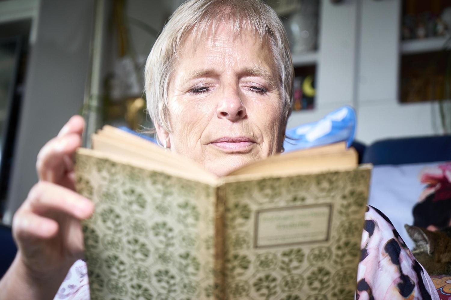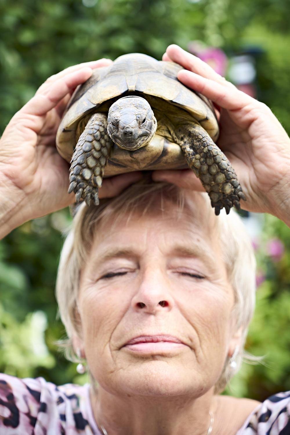 Ich stehe vor dem Haus und sehe bunt bemalte Holzluftballons mit den Namen von Kindern an der Tür und einen Knochen für den Hund. Nach der freundlichen Begrüßung reicht mir beim Gang durch die Wohnung und in den Garten ein kurzer Blick. Bilder und Erinnerungsstücke, gerahmte Fotos, eine kaum zählbare Spiegelflut (mehr als 300) und vor allem viele Bücher (allein alle Titel aus der Insel-Bücherei) zieren die Wände dieser Wohnung. All dies erzählt von prallem Leben, von Kindern und Tieren, aber vor allem von einer überbordenden Gastfreundschaft.