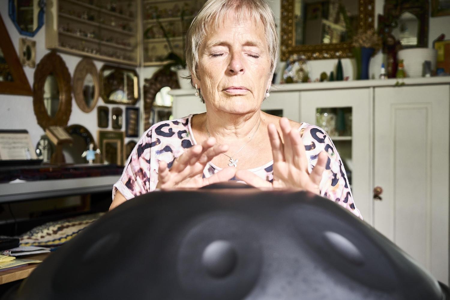 So möchte ich zum Abschluss unseres sehr angenehmen Gesprächs nur noch wissen: „Gibt es eine besondere Kraftquelle, aus der Sie schöpfen?“ „Natürlich ist das zunächst mein Glaube,“ antwortet sie und ihre Augen beginnen zu leuchten, als sie mir verrät, dass sie Klarinette spielt und gerade ein ungewöhnliches Musikinstrument (Handpan, ein mit den Händen gespieltes Klanginstrument aus Blech) lerne. Ihre Stimme nimmt einen schwärmerischen Ton an: „Ich habe da einen sehr beeindruckenden Lehrer, er heißt Georg…“, weiter kommt sie nicht, denn ich falle ihr ins Wort: „Das ist bestimmt mein Freund Georg Wierichs, der auf meiner Lesung im Franz Hitze Haus gespielt hat und den ich seit über 40 Jahren kenne!“ Sabina Krappmann-Klute nickt und ist offenbar ebenso erstaunt wie ich, was diese letzten 50 Minuten so alles offenbart haben. Auf dem Heimweg denke ich an andere Pfleger*innen, die auch Instrumente spielen und eine kleine Vision begleitet mich: Wie schön wäre es, wenn sich ein kleines „Pflegeorchester“ bilden könnte?