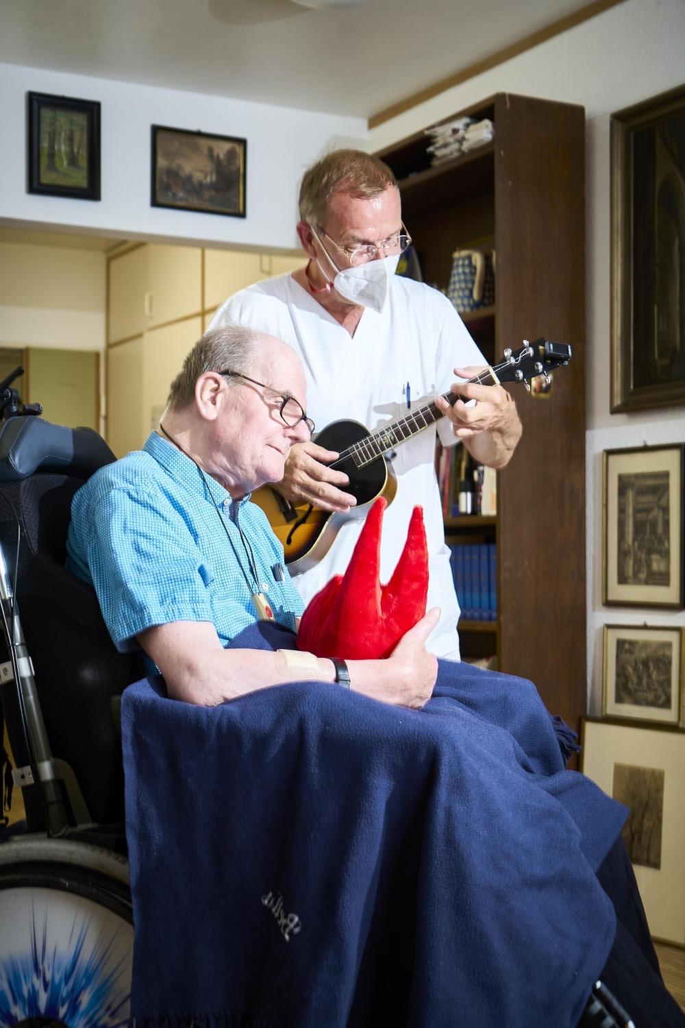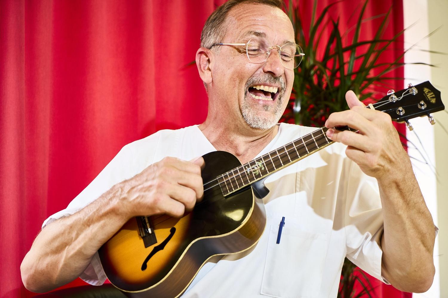 Ich hatte in keiner Weise eine behütete Kindheit. Es ging früh darum, Geld zu verdienen. Schöngeistige Werte oder Bildung in ihrer ganzen Breite, all das war unwichtig. Was ich damals vermisste, konnte ich jedoch nun umsetzen. Ich erfuhr mit großem Glück, dass ich vielen Menschen das Gefühl von Geborgenheit, menschlicher Wärme, Vertrauen und auch körperlicher Nähe schenken durfte. Menschen nahe zu sein und gleichzeitig Distanz zu achten, das ist eine tägliche Herausforderung in unserem Beruf. Ich habe gelernt demütig zu sein und strukturelle Vorgaben nicht wichtiger zu nehmen als die Freiheit und den Willen der zu pflegenden Menschen. Gerade in der palliativen Pflege lernte ich konsequentes Zuhören, einfach anwesend zu sein und zu bleiben, wenn es wichtig ist. Die Entscheidung, ob das Bett jetzt gemacht werden muss, treffe nicht ich oder die Hausregeln, sondern der Mensch, für den wir da sind. Meine frühe Freude an Musik, Kunst und Literatur konnte ich nun beruflich zweifach nutzen. Nach den oftmals harten, aber zugleich schönen Anstrengungen eines Tages war es so leichter möglich den Akku wieder zu füllen. Es entstand so eine Stärkung durch genau jene Dinge, die mir in der Kind- und Jugendzeit verwehrt wurden. Und die Musik half mir ganz direkt, indem ich zur Geburtstagsfeier auf der Station die Ukulele mitnahm.